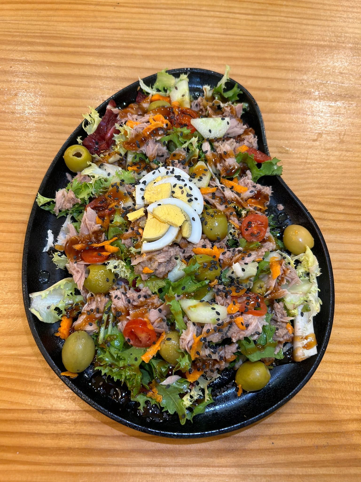 atun- huevo- aceitunas- nueces- vinagreta.
